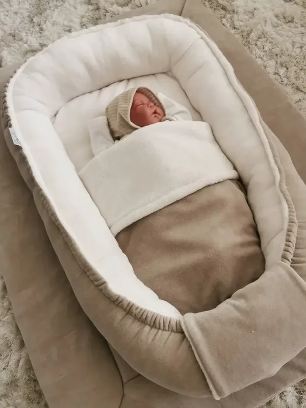 Babynest Beige Velvet & Offwhite Wellness Fleece