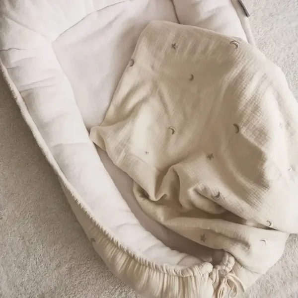 - Bij gebruik van het nestje is het handig om een hydrofiele doek te gebruiken tussen het nestje en je baby, zo voorkom je overbodige wasbeurten.